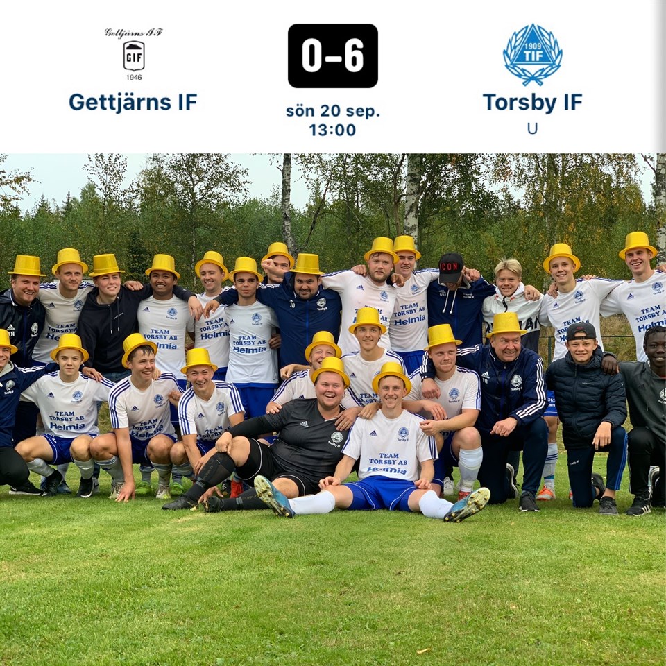 Gettjärn-Torsby 0-6 (0-3) Dagen med stort D! Under helgens hade vi allt i egna händer för att säkra seriesegern för andra året i rad . Det märktes redan på samlingen att många var nervösa, förväntansfulla och vill bara komma ut och värma. Det var full fokus redan på värmningen, och strax innan matchstart sa vi att denna gång ska vi ta tag i taktpinnen från start, och inte ge Gettjärn någon chans. Det lyckas vi med och gör 1-0 efter 10 min av Joel Bergkvist. Sen efter 20 min så kämpar Gettjärn sig tillbaka in i matchen, vi lyckas göra 2-0 i 44 minuten av Pontus Henriksson även 3-0 i 45 minuten av Tobbe Nilsson. Vi går in i halvtid med en 3-0 ledning. Siffrorna kanske inte är helt rättvisa men vi var väldigt effektiva. Vi pratar i halvtid om att vara noggranna, ta kampen, inte slå av på tempot. Vi ska fortsatt föra matchen! Vi startar andra halvlek lika bra som första och Tobbe Nilsson gör sitt andra för kvällen och 4-0 till oss. Nu känns det som luften går ur Gettjärn och resten av sista halvleken är det inga snack om saken. Vi ökar trycket och äger mycket boll. Gettjärn får slita ont med gör det med stor heder! Vi gör 5-0 i minut 63 av Elias Rahm. Sen även 6-0 i minut 80 av Petter Johannesson. En mycket bra genomförd match av oss! Det har varit en mycket speciell säsong på många sätt som tillslut slutade i en serieseger....det är häftigt 💙 Målskyttar 1-0 Joel Bergkvist, ass Kristoffer Fallgren 2-0 Pontus Henriksson, ass Tobbe Nilsson 3-0 Tobbe Nilsson, ass Kristoffer Fallgren 4-0 Tobbe Nilsson ass Joel Bergkvist 5-0 Elias Rahm 6-0 Petter Johannesson Det är också fantastiskt att se vilka steg grabbarna har tagit under året💪 Man kan inte vara mer stolt som tränare när man får träna ett sånt gäng😍💙 Andreas & Jörgen