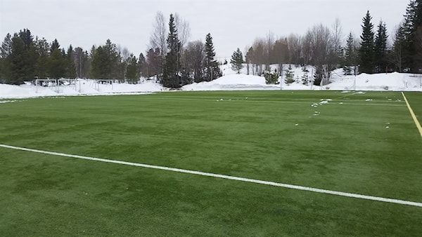 Konstgräset kommer från ÖP-hallen och det håller bra standard fortfarande.