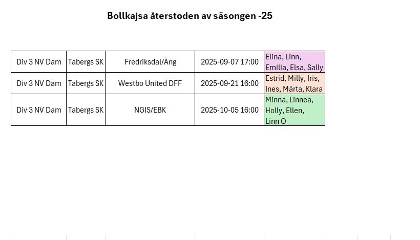 Vi har uppmärksammats på att det är några tjejer som ev spelar match samtidigt som bollkajsauppdraget den 21 sept, p.g.a. att vi blandat om lagen efter uppehållet. Egen match har prioritet men vi påminner om att kolla en extra gång och försöka byta med någon ifall det krockar.