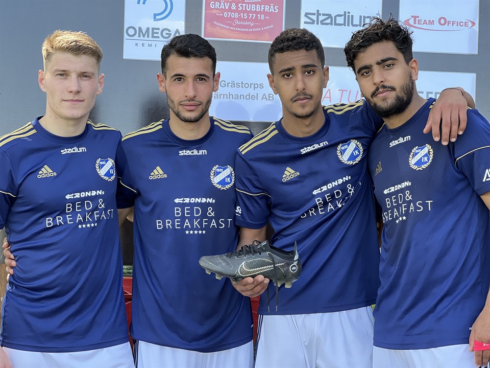 Under lördagens eftermiddag var det äntligen dags för match igen. Med över 100 betalande åskådare och stundtals sommarvärme var förutsättningarna fina för en trivsam eftermiddag hemma på Tunet då Norra Härene stod för motståndet. Första halvlek får vi inte riktigt till det spelmässigt. Bortalaget pressar högt och står på rätt i sina positioner. Vi kommer till några halvchanser men skärpan vid den avgörande passningen och timingen i löpningarna är inte riktigt där. Trots att vi inte får det med små marginaler spelmässigt att fungera i den första halvleken forsätter vi att visa tro på vår spelide och strax innan halvtidsvilan för vi äntligen utdelning! Flaket tar sig ner på sin vänsterkanten och slår ett inlägg som Ned nickar in, 1-0! I den andra halvleken känns det som att bortalaget inte riktigt har orken att ligga lika rätt i sina positioner och bedriva det press-spelet man gjorde i den första halvleken. Samtidigt som vi alltmer får till vårt passningspel, både i speluppbyggnaden och kombinationer längre upp i banan. Med knappa 55 minuter på matchuret vinner vi en hörna som Alexander Miller förvaltar på bästa sätt, genom att skruva den direkt i mål, 2-0! Knappa fem minuter efter, ny hörna som slås kort och Aziz kan elegant curla in 3-0! Härene reducerar till 3-1 med 20 minuter kvar men kommer aldrig närmare än så och glädjen efter reduceringen blir kortvarig. Aziz tar sig förbi på sin vänsterkant och slår en perfekt avvägd boll in till Hassan som enkelt kan stöta in 4-1. Trots många byten och skiften i positioner avslutande del av halvleken bibehålls bra kontroll och Ned får avsluta målskyttet för dagen när han framspelad av Viktor.N kan sätta 5-1 som blir matchens slutresultat. Riktigt moraliskt styrkebesked att trots haltande spel inledningsvis forsätta tro på vår spelide, behålla en positiv känsla även när det inte riktigt spelmässigt stämmer för att sedan tillslut få utdelning för den tron och tillslut vinna med komfortabla siffror! På lördag väntar ny kamp, denna gång borta mot Mellby i jakten på fjärde raka segern VAMOS! /M