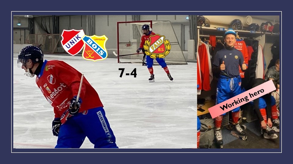 Den gångna söndagen spelades sista borta matchen för säsongen borta mot Gustavsberg. Matcherna mot Gustavsberg är alltid bra och roliga att spela. Gustavsberg är tvåa i serien efter Kalix och har ett bra och homogent lag. Genom åren har det varit svårt att ta poäng borta mot Gustavsberg. De är väldigt starka på hemmaplan. Vår första möte hemma slutade tyvärr med en 1-2 förlust. Vi gjorde då en bra prestation och den här gången var det ett väldigt taggat UNIK/BOIS som satte sig i bussen vid Recoverhallen för att ta sig an matchen mot serietvåan. GUSTAVSBERG-UNIK/BOIS 3-3 (2-2) Vi startar matchen lite tveksamt och ger Gustavsberg möjligheten att spela det spel de önskar. De första tjugo minuterna går med fördel till Gustavsberg som också gör både 1 och 2-0. Vi jobbar oss in i matchen och jämnar ut spelet, vilket resulterar i en reducering till 2-1 genom Assar Uebel. Vi fortsätter att spela bra och kvitterar till 2-2 genom Linus Tydèn. 2-2 blir också halvtidsresultat. Andra halvlek blir en jämn tillställning med chanser åt bägge håll. Gustavsberg får en straff som vår målvakt Viktor Mårtensson förtjänstfullt tar. Vi spelar bra försvarsspel och ger inte Gustavsberg så många chanser. Gustavsberg tar dock ledningen med 3-2 i den 79 minuten på hörna genom Kevin Brown. Vi replikerar direkt till 3-3 i minuten efter genom Hannes Kanbjer. Gustavsberg tar timeout för att hitta vägar framåt i de sista 10 minuterna. Vi försvarar oss väldigt bra och har ett par rejäla chanser att avgöra till vår fördel men matchen slutar oavgjort 3-3 vilket känns rättvist. Vi gör en mycket bra prestation och det är bra att ta poäng borta mot ett hemmastarkt Gustavsberg. Målskyttar; Assar Uebel 1, Linus Tydèn 1, Hannes Kanbjer 1. Assist; Assar Uebel 1, Hanne Kanbjer 1, Jonathan Asplund 1. Nu är det en match kvar i årets serie. Den spelas mot Skutskär. Det kommer att bli en spännande match då Skutskär har gjort många fina matcher med bra resultat efter jul. BOKA IN SÖNDAG DEN 25 FEBRUARI 16.00 I RECOVERHALLEN //VARMT VÄLKOMNA ÖNSKAR UNIK/BOIS