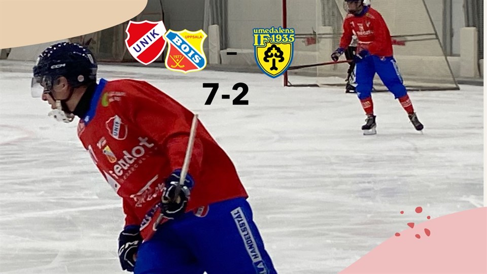 Fredag kväll, match mot Umedalen i Recoverhallen. Gästande Umedalen anlände vid 17 tiden till Recoverhallen efter en lång bilresa från Umeå. Spännande att möta Umedalen som veckan innan spelade oavgjort mot Gustavsberg. Umedalen har två bekanta ansikten som spelat i Uppsala lag tidigare, Clarence Wahlman tidigare Sirius och Teo Eklund som spelade i UNIK för två säsonger sedan. Matchen börjar i ett ganska lågt tempo där lagen mest känner på varandra. Vi tar ledningen på hörna genom Jonathan Asplund. Matchen fortsätter med att vi skapar en del chanser utan att vi lyckas sätta bollen i mål. Umedalen kvitterar genom ett fint anfall till 1-1 vilket också blir halvtids resultat. Efter ett bra snack i halvtid har vi bestämt oss för att öka boll tempot samt utnyttja vår fina skridskoåkning. Vi går ut till andra halvlek och genomför det vi bestämt i paus vilan (härligt). Bra skridskoåkning där vi släpper bollen mellan oss ger också en fin utdelning så att vi kan rinna iväg till en säker vinst med 7-2. Tränare Linberg var mycket nöjd efter matchen då vi lyckas genomföra det som var bestämt. Umedalen reducerings mål gjordes av fd UNIK spelaren Teo Eklund på en fin genomåkning. Målgörare; Jonathan Asplund 2, Hannes Kanbjer 3, Jens Boman 1 samt Erik Ringblom 1 Ass; Jens Boman 1, Adam Askelöf 1, Gabriel Lindberg 1. Extra rolig att vi har två killar i poängligans topp i div 1 norra; Adam Askelöf 11p samt Hannes Kanbjer 10p. Vi tränar på under kommande vecka för att på söndag 10 december möta Helenelund Bandy kl.14.30 hemma i Recoverhallen. Hoppas att vi ses då. Om inte så visas matchen på Bandyplay
