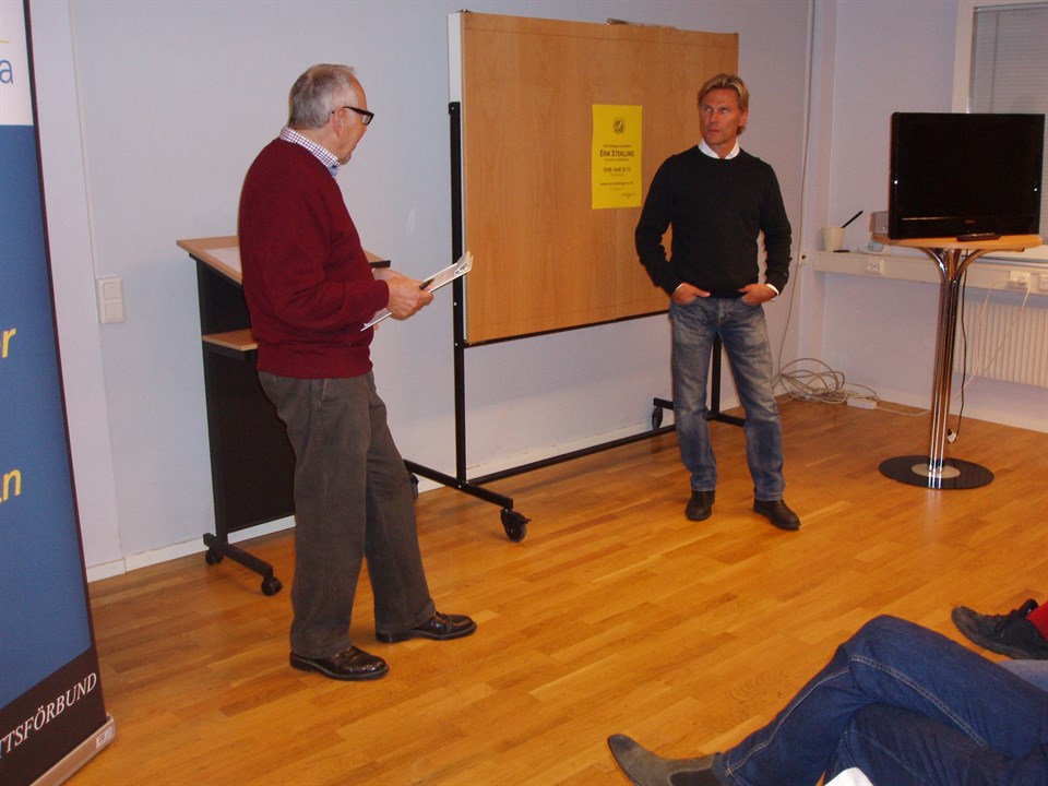 En fullsatt sal, ett 60-tal personer, lyssnade intresserat till Erik Stenlund när han berättade om sitt liv som isracing- och speedwayåkare. Vi fick också höra en hel del om hur det var att komma till Ryssland på 80-talet med många timmar i tullen, närmast obefintliga vägar, ingen mat m.m. Det blev åter ett väldigt lyckat café.