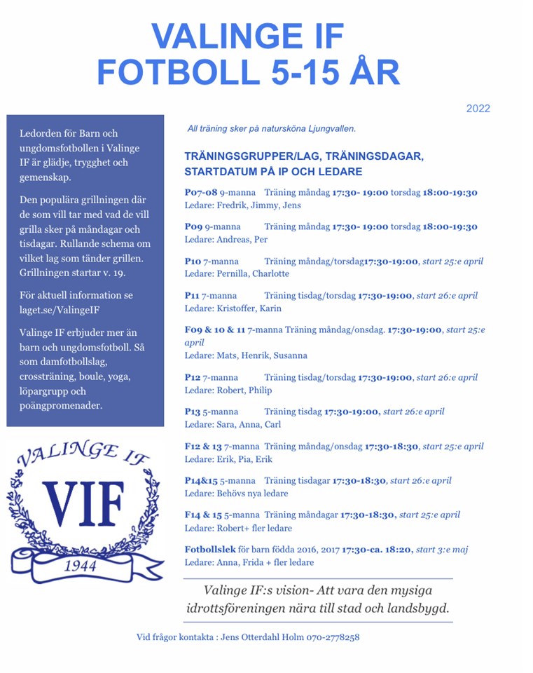 Valinge IF:s barn och ungdoms fotboll 2022