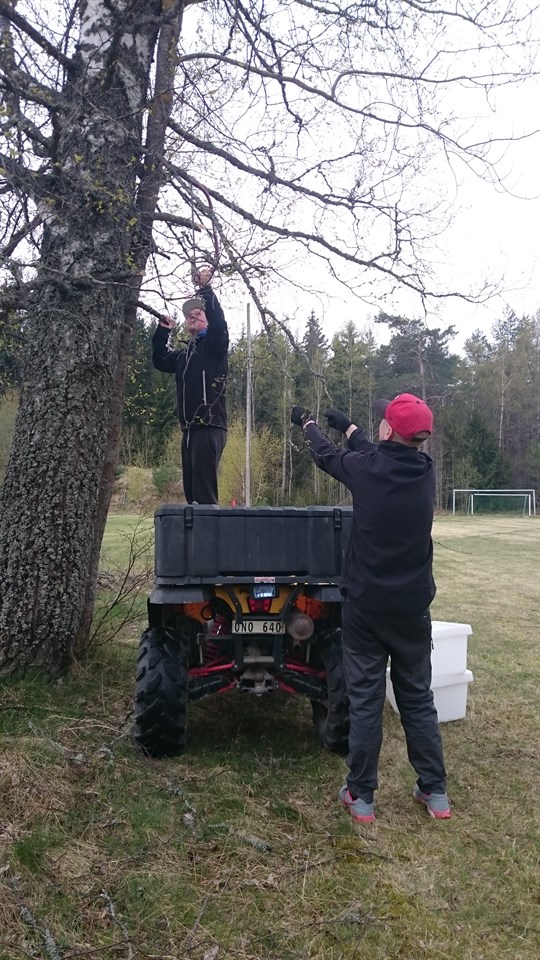 Nu har vi börjat fixa c-planen åt lag 03. Det är en superplan. Men grenar måste bort och kritning måste ske. Leo och kompisen Rasmus är hjältarna för dagen.