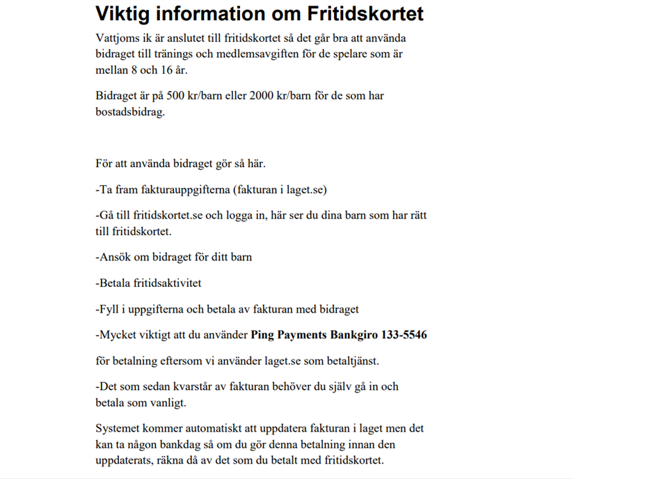 Klicka på bekräftelselänken i det mejl vi skickat dig för att börja ta emot uppdateringar från Vattjoms IK F-13/14.