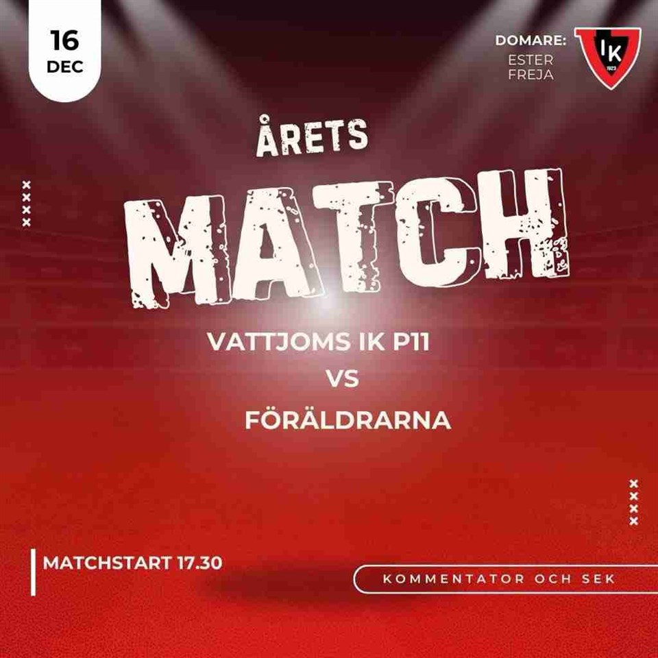 Nästa måndag, 16/12 kör vi en föräldramatch mot våra grabbar. Matchen startar 17.30 men grabbarna samlas som vanligt 16.45 för att ställa iordning sarg m.m. Domare är Ester och Freja från vårt Dam/utvecklingslag. Efter matchen stannar vi kvar för lite fika och surr. Hoppas på bra uppslutning från föräldrahåll i denna roliga men ack så viktiga match! P-11 9 dec 2024 0kommentarer