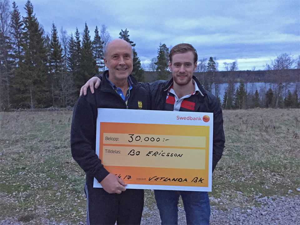 Pontus Blomberg åkte hem och överraskade månadens vinnare i Andelslotteriet, Bosse Ericsson. Se filmen från besöket här. Var sjätte månad är det jackpot i Andelslotteriet och den här månaden var det en lycklig vinnare som fick hela 30 000 kr. Det var något som Pontus Blomberg tyckte var värt att uppmärksamma. Här kan ni se filmen från när Pontus hälsar på hemma hos Bosse. Vill du gå med i VBK:s andelslotteri? Kontakta kansliet på 0383-138 38 eller info@vetlandabk.se.