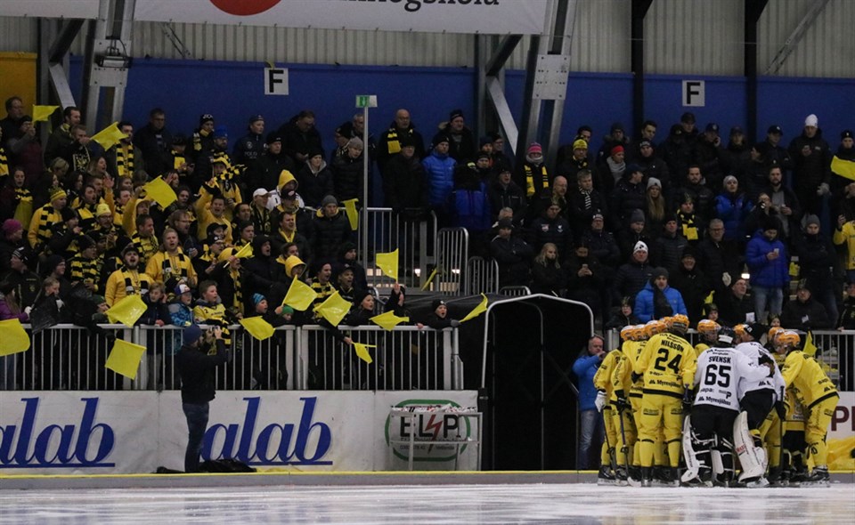 Vetlanda Bandyklubb erbjuder ett förmånligt erbjudande inför bortamatchen mot IFK Vänersborg 10 februari. Alla VBK:are som ska se bortamatchen i Vänersborg mellan IFK Vänersborg och Vetlanda BK har chansen att även äta middag i arenans restaurang före matchen. Inget medlemsskap i Gulsvarta Hjärtan krävs, vi välkomnar VBK-supportrar till gemenskap före matchen! Matchen spelas fredag 10 februari kl 19.00 i Arena Vänersborg. Kostnad för mat och entrébiljett (ståplats) är 220 kr per person. Begränsat antal platser i vid våra bord i restaurangen, så anmäl dig nu för att säkra din plats! Anmälan sker till Andreas Söderman på 070-233 99 03 eller andreas@vetlandabk.se. Vi behöver ha din anmälan senast måndag 6 februari kl 12.00. I samband med evenemanget kommer vi informera om Gulsvarta Hjärtan och VBK:s arbete för att stärka gemenskapen med supportrar runt om i landet. Mer information om Gulsvarta Hjärtan kan du läsa här