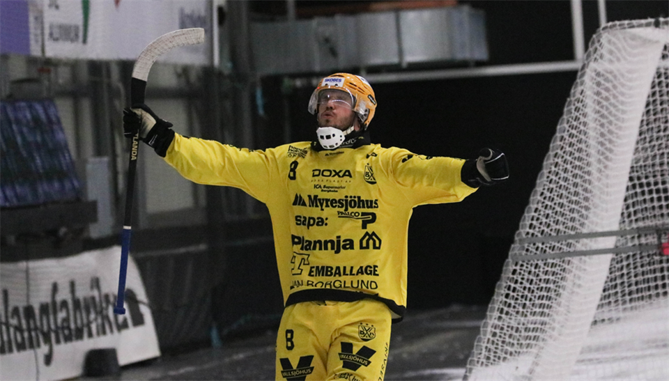 Efter storsegern mot Tellus summerades insatsen av Tobias Nyberg och tränare "Putte" Johansson i VBK-TV. Tränaren "Putte" var givetvis nöjd med sitt lag efter den andra raka storsegern hemma i Sapa Arena. I torsdags blev det 9-4 mot Sandviken och nu 14-4 mot Tellus, totalt 23 VBK-mål på två matcher och två övertygande insatser av "Puttes" lag. - Det var bra i dag, vi jobbade med att ladda om efter urladdningen i torsdags. Vi gjorde väl en så där första halvlek men kör på och vi vet att alla mål kommer vara viktiga så det var moroten för oss att köra på ända in i slutet, säger "Putte" i en intervju med VBK-TV efter matchen. Två av målen gjordes av Tobias Nyberg som verkligen har hittat målformen sedan nollan spräcktes på annandagen. De två målen mot Tellus innebär nu fem totalt den här säsongen för ytterhalven från Lidköping som också utnämndes till matchens lirare mot Tellus. - Jag vet faktiskt inte vad skillnaden är, de har börjat sitta nu helt plötsligt och det är jäkligt skönt, säger Nyberg efter matchen i VBK-TV. Se intervjun med Tobias och Putte här! SE ALLA MÅL PÅ BANDYPLAY På bandyplay.se kan ni också återuppleva de 14 målen i segern mot Tellus. Inte minst går det att njuta om och om igen av Joakim Anderssons konstmål fram till 1-0 tidigt i matchen. Se alla målen här