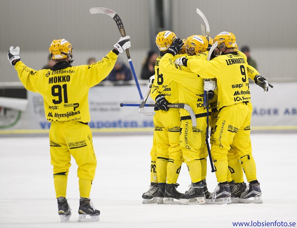 Kalix - Vetlanda 5 - 4 (1 - 3) Målskyttar Kalix: Johan Sundqvist 4, Anton Khrapenkov 1 Målskyttar VBK: Joakim Andersson 2, Pontus Vilén, och Johan Löfstedt. Utvisningar Kalix: 1 x 10 VBK: 2 x 10 Hörnor: 10 - 12 Vetlanda startar matchen förtroendeingivande och tar välförtjänt ledningen efter sex minuter. Johan Löfstedt trampar igen Kalix mittfält och frispelar Joakim Andersson som rundar målvakten och lägger in bollen i mål. Bara tre minuter senare gör Jocke 2-0 till Vetlanda, denna gången efter ett lyft från Tobias Nyberg. Och efter 14 minuter gör VBK sitt tredje mål, efter en tilltrasslad situation inne i straffområdet så står Pontus Vilén på rätt plats och kan slå in bollen i mål. Så långt spelar Vetlanda med bra fart i passningspelet, och man ger inget utrymme till Kalix som mest får försvara sig. VBK vaskar fram ytterligare en bra chans i 20:e minuten, men Abbe Bodin i hemmamålet är bra med och till slut går bollen i stolpen. Därefter tappar VBK lite energi, spelet jämnar ut sig och Kalix vaskar fram lite chanser framåt. Inte minst får man en straff efter en hög klubba av Vetlanda-försvaret, Kalix reducerar efter en halvtimma och får ännu lite mer av spelet. Resten av första halvlek är i stort sett helt jämn, med bara ett par chanser åt vardera håll. Efter pausvilan kommer Kalix ut mycket mer aggressivt, och framför allt mer aggressivt än Vetlanda. VBK har väldigt svårt att få fram några ordentliga anfall medan Kalix satsar rätt hårt med bollar in i straffområdet. Det ger utdelning två gånger om, först i 60:e minuten när man snyggt spelar sig igenom Vetlanda-försvaret. Fem minuter senare gör Johan Sundqvist sitt tredje mål efter ett inspel från vänsterkanten. Vetlanda tar timeout, och lyckas på sin nionde hörna strax därefter återta ledningen genom Johan Löfstedt. Men även Kalix ska till slut göra mål på hörna, och återigen är det Johan Sundqvist som gör mål. Resten av matchen är det mer kamp än skönspel där bägge lagen jagar segermålet. Och det blir Kalix som får till det, något slumpartat, efter en lyftning långt utifrån som går direkt i mål. Läs kommentarer från tränare Patrik Johansson här. Höjdpunkter från Bandyplay. Vetlanda-Posten. Matchrapport.