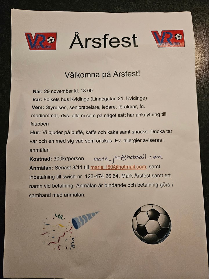 Klicka på bekräftelselänken i det mejl vi skickat dig för att börja ta emot uppdateringar från Vedby-Rönne IF P 15/16.