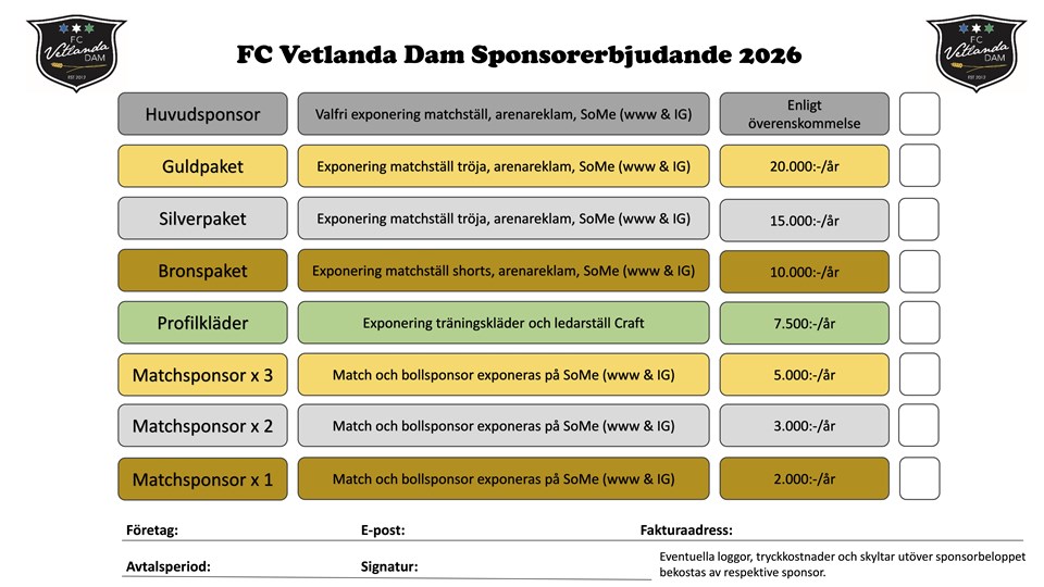 Fyll i din e-postadress för gratis uppdateringar om FC Vetlanda Dam A-truppen