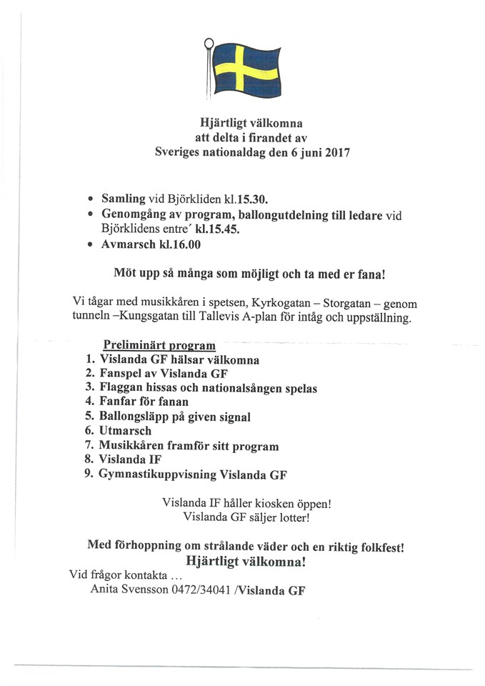 God eftermiddag Tisdagen den 6-juni ska vi samlas vid Björkliden och gemensamt tåga ner genom Vislanda för en enkel ceremoni på Tallevi. Vi samlas uppe vid Björkliden klockan 15:30, avmarch beräknad till 16:00. Vi kommer kalla till detta event så att vi ser hur många vi blir, nu hoppas vi på strålande solsken. Klädsel: Matchtröja (Ni som inte har fått er ännu får den vid samlingen, eller annan röd VIF tröja). P-07 1 jun 2017 0kommentarer