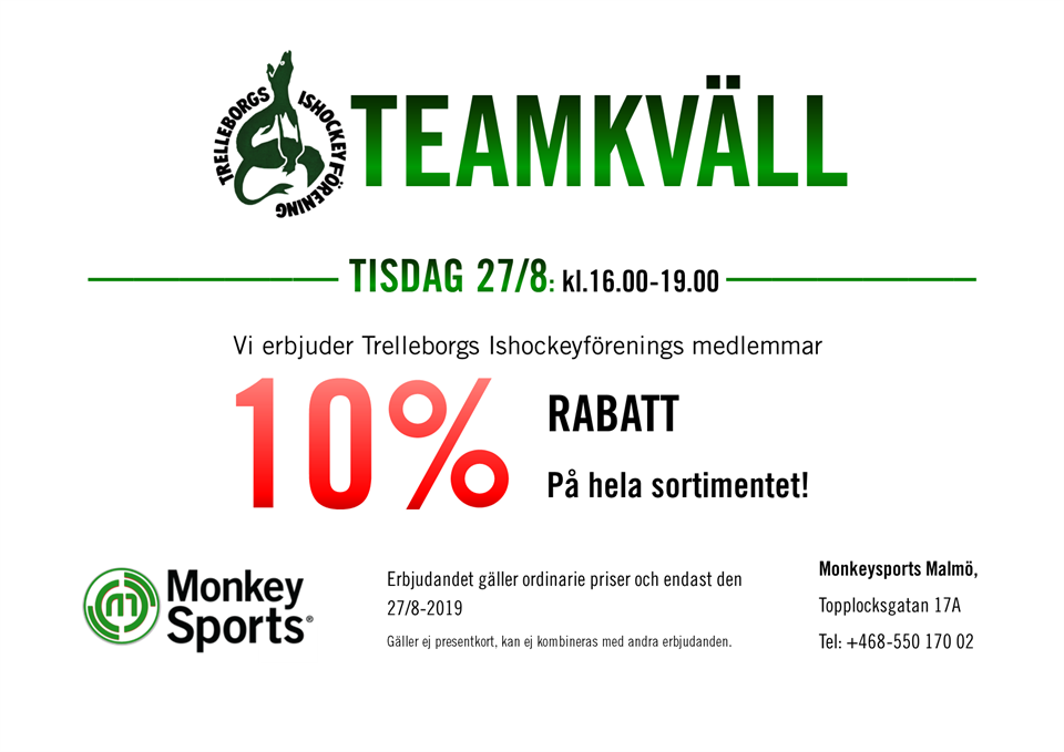 Välkomna på Teamkväll på MonkeySports i Malmö. Team-12 20 aug 2019 0kommentarer