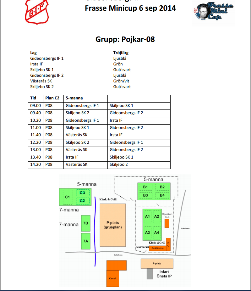 Hej. Här kommer spelprogrammet för Minicupen på Lördag. Första matchen börjar 11.40 så vi kan samlas 11.00 på Önsta IP vid samma planer som vi spelade på förra helgen. Alla som ska medverka skickar ett sms till mig och bekräftar. P-08 31 aug 2014 0kommentarer