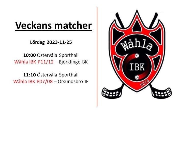Denna veckan har vi 4 stycken matcher att se fram emot. Damerna har dubbla matcher där dom spelar borta mot Uppsala Life ikväll och har hemmamatch på söndag förmiddag. Sedan har även våra ungdomslag bortamatcher under lördagen. Wåhla IBK 30 nov 2023 0kommentarer