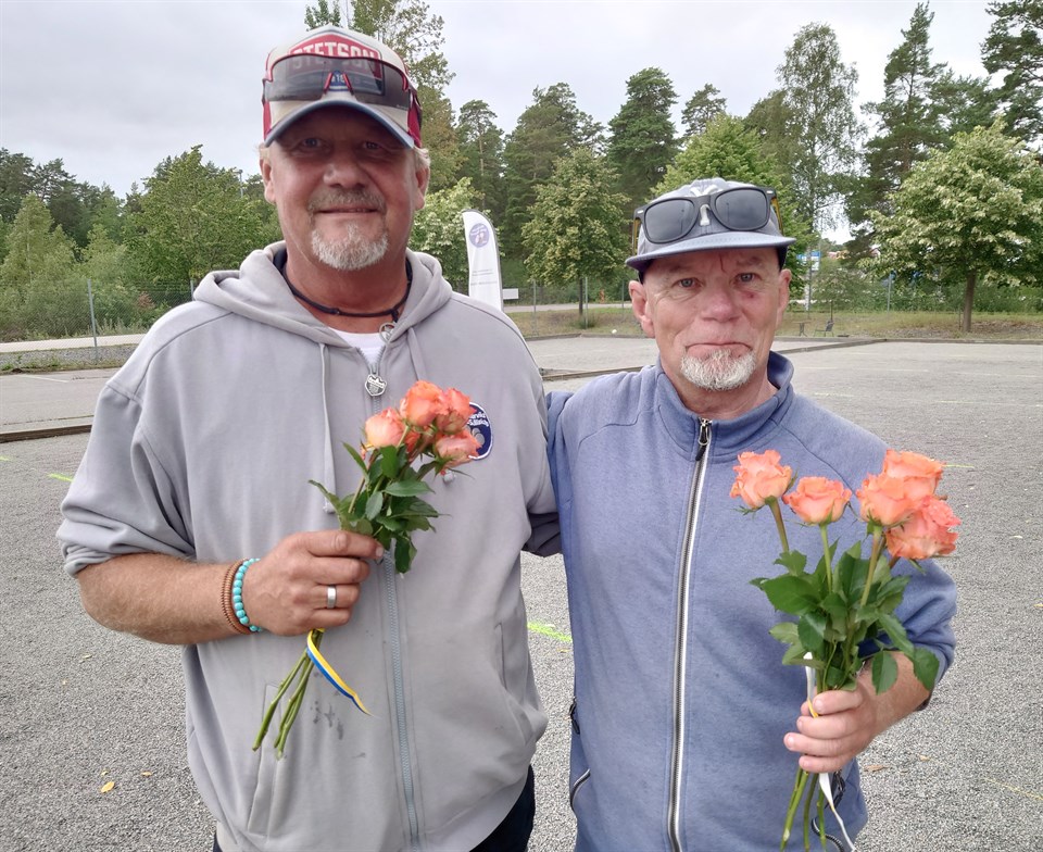 Föregående vecka och Westerviks Boule Sällskap hade bjudit in till KM i klassen Öppen Dubbel! Hela 17 dubbelpar hade anmäl till detta KM, som kom att spelas om 4 grupper och samtliga matcher spelades till 13. Förutsättningarna i övrigt var att bästa 1a och 2a i varje respektive grupp spelade vidare i kvartsfinaleerna. Grupp 1 och här gick vidare till kvartsfinal: Per-Olof Bjerkhaug/Thomas Nyberg 3 vinster/6 poäng +18 klotdiff Ove Öhrling/Arne Jonasson 2 vinster o 1 förlust/4 poäng +5 klotdiff Grupp 2 Tomas Ljungdahl/Håkan Gustavsson 3 vinster/6 poäng +18 klotdiff Gun-Britt Andersson/Lars Zeed 2 vinster o 1 förlust/4 poäng +1 klotdiff Grupp 3 Tomas Östin/Bo Eriksson 3 vinster/6 poäng +16 klotdiff Kristina Grönlund/Kenneth Rylander 2 vinster o 1 förlust/4 poäng +3 klotdiff Grupp 4 med 5 lag till spel Jan Edström/Lars-Åke Sandberg 4 vinster/8 poäng +34 klotdiff Håkan Karlsson/Daniel Borgen 3 vinster o 1 förlust/6 poäng +19 klotdiff I kvartsfinalerna möttes följande dubblar med dessa resultat: Per-Olof Bjerkhaug/Thomas Nyberg vs Håkan Karlsson/Daniel Borgen. Vinst för Håkan/Daniel med 13-10 Tomas Ljungdahl/Håkan Gustavsson vs Kristina Grönlund/Kenneth Rylander. Tomas/Håkan vinner med 13-3 Tomas Östin/Bo Eriksson vs Gun-Britt Andersson/Lars Zeed. Vinst för Andersson/Zeed med 13-11 Jan Edström/Lars-Åke Sandberg vs Ove Öhrling/Arne Jonasson. Ove och Arne vinner med 13-11 Semifinalerna gav följande resultat: Håkan Karlsson/Daniel Borgen vs Tomas Ljungdahl/Håkan Gustavsson. Vinst för Håkan/Daniel med 13-9 Gun-Britt Andersson/Lars Zeed vs Ove Öhrling/Arne Jonasson. Andersson/Zeed till final efter vinst med 13-11 Finalen spelades och vanns av Håkan Karlsson/Daniel Borgen med klara 13-3. Det var inget snack, liksom. Tävlingskommittén uppvaktade 2023 års Klubbmästare i klassen Öppen dubbel med välförtjänta rosor, samt riktar ett stort TACK till de engagerade medlemmar som med liv och lust spelade alla dessa timmar!