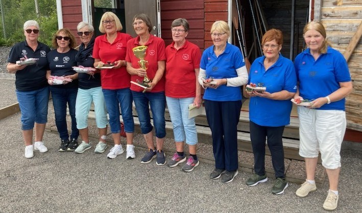 Klubbarna inom Tjustserien har ju sedan flera år genomfört ett tävlingsupplägg med en Dam-trippel! Arrangerande klubb var 2023 Tjust IF/Loftahammar BouleKlubb. Antalet lag och klubbar som anmält lag har varierat och man kan ana sig en vikande trend bland damerna! 2023 års Tjustserien Dam-trippel hade från 5 av 7 klubbar i Tjustserien, samlat 8 trippellag...... Spelupplägget för dagen var 4 omgångar enligt Monrad, ett upplägg där flest vinster och bästa klotdiff ger en vinnare! Antal vinster Klotdiff 1a Överum 3 13 Lena Pettersson Lena Johansson Gunn Kristiansson 2a Westervik 3 8 Gun-Britt Andersson Kristina Grönlund Britt-Marie Karlsson 3a Hultsfred 3 6 Margareta Carlsson Monica Johansson Margit Larsson 4a Överum 2 18 Kerstin Ljungdahl Gun-Britt Larsson Barbro Karlsson Antal vinster Klotdiff 5a Tjust IF 2 -3 Catharina Angelöf Yvonne Gustavsson Irene Karlsson 6a Tjust IF 2 -5 Anita Malm Ingmarie Claesson Ingegärd Melin 7a Hjorted 1 -18 Annbritt Nilsson Lilian Johansson Kerstin DiMeo 8a Hjorted 0 -27 Astrid Andersson Britt Ekström Agnetha Hestholm