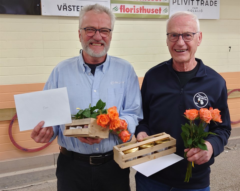 En alldeles sprillan ny tävling kunde vi lägga till i vårt redan späckade tävlingsprogram! "MOPPE-SENAP CUP" Med ett tävlingsupplägg som var 5 omgångar enligt Monrad och lottade dubbellag! Lottade lag ja, ett upplägg som tidigare varit nästan dömt att misslyckas, i så mening att anmälningsbenägenheten varit usel, eftersom man inte vet vem man får spela med........ Eftersom prisbilden, i vår värld var av stora mått, blev det heller inte svårt att få tävlingen fulltecknad! 16 lag-32 spelare som med sinne för nerslag och skott spelade på en riktigt hög nivå! Redan efter omgång 3 kunde man ana sig till chans på prispallen. 2 lag med 3 vinster, 6 lag med 2 vinster och bästa klotdiff så långt, 25 för laget Tomas Lind och Tomas Ljungdahl, som i den fjärde omgången förlorade med 11-3 vs laget med Kerstin Ljungdahl/Tomas Östin, som i och med den vinsten var enda lag som inför den femte omgången hade 4 vinster/8 poäng. Lag med chans till topp-tre placering var inför sista omgången och dess resultat i omgång 5. Tomas Lind och Tomas Ljungdahl vs Kerstin Ljungdahl och Tomas Östin 13-6 Per-Olof Bjerkhaug och Bengt-Åke Nilsson vs Christian Hatzl och Stig-Ola Larsson 2-13 Bernt Kedfors och Håkan Karlsson vs Daniel Borgen och Jan Edström 6-13 Vinnare i "MOPPE-SENAP CUP" blev: 1/ Tomas Lind och Tomas Ljungdahl 4 vinster/8poäng och 24 klotdiff 2/ Christian Hatzl och Stig-Ola Larsson 4 vinster/8 poäng och 22 klotdiff 3/ Kerstin Ljundahl och Tomas Östin 4 vinster/8 poäng och 12 klotdiff Vi uppmärksammar gärna laget med Anders Lundgren/Björn Kristiansson, som efter en darrig inledning kom tillbaka till plats 6! Vi vill också lyfta Tomas Linds insats! Riktigt bra spel i en kombo med en annan Tomas..... Tävlingskommittén tackar samtliga lag för bra spel på en riktigt hög nivå..... OCH Välkomna tillbaka på nästa tävlingsupplägg! "MAXIs ÄGG-LÄGG"