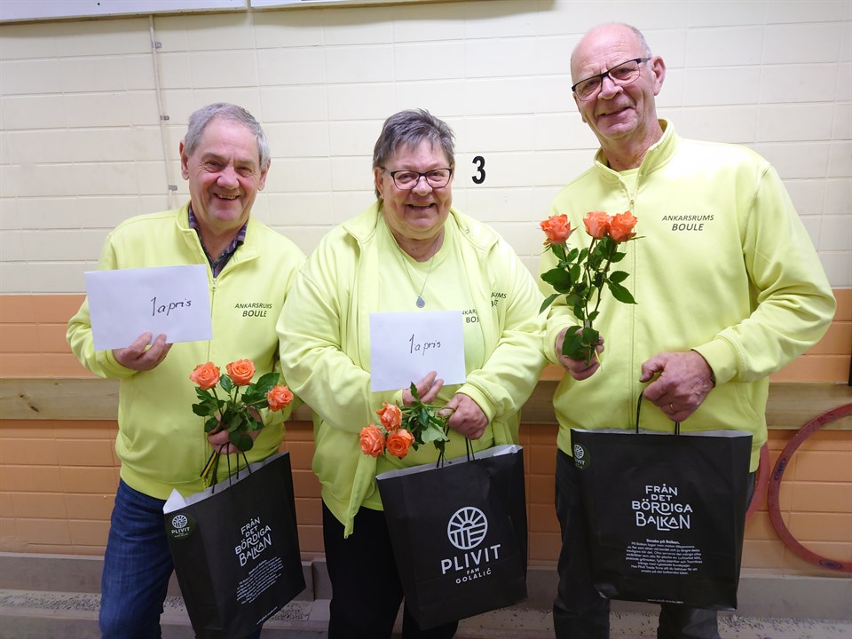 Tjustseriens inomhusserie är avslutad och som traditionen bjuder och en markering att inomhussäsongen är över, samlar deltagande klubbar sina bästa lag till ett seriesammandrag. Samtliga klubbar har anmält 3 lag vardera och Westerviks Boule Sällskap, som haft 2 lag i serien har anmält 4 lag. Således 16 trippellag till start i ett spelupplägg enligt Monrad med 5 omgångar, där flest antal vinstmatcher och bäst klotdiff ger en plats på pallen! Från de inledande omgångarna sticker i omgång 1 ett par matcher ut: Nils-Inge Ljungberg/Hans Ringdahl/Thomas Nyberg vs Yvonne Karlsson/Sven Karlsson/Rolf Lindqvist 3-13 och Lena Pettersson/Pauli Pettersson/Bedri Potunkoj vs Agneta Ahnlund/Marie Ejdedal/Per Ottozon 13-3. Som följd av det resultatet möttes de båda vinnande lagen i dessa möten varandra i omgång 2 med resultatet: Lena Pettersson/Pauli Pettersson/Bedri Potunko vs Yvonne Karlsson/Sven Karlsson/Rolf Lindqvist 1-13, så´visst är boule en spännande sport! I övrigt var den andra omgången relativt jämn resultatmässigt utom två 13-0-matcher, som var mellan lagen Tomas Åström/Kerstin Ljungdahl/Tomas Ljungdahl vs Astrid Andersson/Christian Hatzl/Per-Olof Bjerkhaug 13-0 och mellan Agneta Ahnlund/Marie Ejdedal/Per Ottozon vs Nils-Inge Ljungberg/Hans Ringdahl/Thomas Nyberg 0-13. Lagen på "de bästa banorna" skiftade inte i den tredje omgången, men resultaten i matcherna på övriga banor gjorde dagen för de vinnande lagen där. Fjärde omgångens toppmöten fick spänningen att bli oliiiiidlig efter resultaten: Yvonne Karlsson/Sven Karlsson/Rolf Lindqvist vs Jan Edström/Stefan Edström/Lars-Åke Sandberg 1-6 Lena Pettersson/Pauli Pettersson/Bedri Potunkoj vs Ove Öhrling/Leif Schenell/Arne Jonasson 1-13 Inför den avslutande omgången var pallaspiranterna egentligen 4 lag med följande resultat: Jan Edström/Stefan Edström/Lars Åke Sandberg 4 vinster/8 poäng/12 klotdiff Yvonne Karlsson/Sven Karlsson/Rolf Lindqvist 3 vinster/6 poäng/20 klotdiff Ove Öhrling/Leif Schenell/Arne Jonasson 3 vinster/6 poäng/15 klotdiff Ulf Erlandsson/Britt.Marie Karlsson/Bo Eriksson 3 vinster/6 poäng/14 klotdiff Således 4 lag med möjlighet att gå vinnande ur tävlingen och Lag Edström i vinnarhålet med 4 vinster! I den femte omgången möttes Yvonne Karlsson/Sven Karlsson/Rolf Lindqvist vs Jan Edström/Stefan Edström/Lars-Åke Sandberg återigen med resultatet 13-8 och härmed kunde laget säkra sin seger som Tjustseriens seriesammandrags bästa lag. Pallen i övrigt blev att Ove Öhrling/Leif Schenell/Arne Jonasson kom på en 2a plats, 4 vinster/8 poäng 20 klotdiff. På 3e plats kom Jan Edström/Stefan Edström/Lars Åke Sandberg med 4 vinster/8 poäng/7 klotdiff. De bästa lagen förärades med lyxiga priser från Plivit Trade, rosor och ekonomisk stimulans. Westerviks Boule Sällskap tackar deltagande lag för väl genomförda matcher!