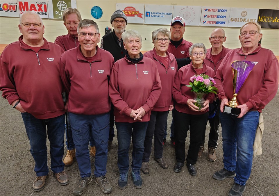 Tjustserien inomhus har som tidigare meddelats på denna sida spelats klart och vinnande lag är Hjorted BK! Från vänsteri bild: Kolbjörn Borgen, Tommy Ternefors, Svante Ottosson, Christian Hatzl, Kerstin DiMeo Ann-Britt Nilsson, Daniel Borgen, Astrid Andersson, Per-Olof Bjerkhaug och Håkan Gustavsson. I laget har under serien spelat: Ingvar Pehrsson, Mats Hedin och Clas-Ove Gren. Laget tar härmed sin första inteckning i det för Tjustserien inomhus instiftade vandringspris! Noterbart är att 2022>2023 års inomhusserie är det första sedan 2018>2019 eftersom en pandemi kom emellan.... Stort GRATTIS till Hjorted BK!