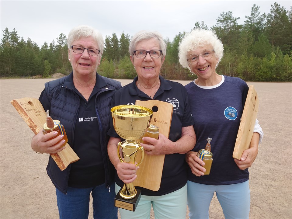 Som bekant har Tjustklubbarna en årlig tävling för klubbarnas damer: TJUSTSERIENS DAM-TRIPPEL! Lika bekant är att Överum BTK 2021 spelade hem det tidigare vandringspriset för tid och evighet. Så från och med 2022 är ett nytt vandringspris instiftat att kämpa om och här vill vi gärna hylla vårt WBS-lag som tog den första inteckningen! Med 8 damtripplar till start var i stort sett samtliga klubbar representerade och enligt spelschemat indelades lagen i 2 grupper enligt följande: Grupp 1 Hultsfred/Lag 1 - Elisabeth Gustavsson-Margit Larsson-Margareta Karlsson Hjorted/Lag 1 - Kerstin DiMeo-Astrid Andersson-Britt Ekström Överum/Lag 1 - Kerstin Ljungdahl-Gun-Britt Larsson-Ingela Larsson Loftahammar- Catharina Angelöf-Agneta Ahnlund-Yvonne Gustavsson Grupp 2 Överum/Lag 2 - Lena Pettersson-Barbro Karlsson- Gunilla Kristiansson Westervik - Gun-Britt Andersson-Kristina Grönlund-Lisbeth Nilsson Hultsfred/Lag 2 - Monica Johansson-Laila Gustavsson-Gudrun Karlsson Hjorted/Lag 2 - Lilian Johansson-Ann-Britt Nilsson-Ann-Louise Nilsson De lag som gick vidare från gruppspelet till spel i semifinalerna var följande, med resultatet: Grupp 1 Överum/Lag1 - Kerstin Ljungdahl-Gun-Britt Larsson-Ingela Larsson 3 vinster-6 poäng och +22 klotdiff Loftahammar- Catharina Angelöf-Agneta Ahnlund-Yvonne Gustavsson 2 vinster-1 förlust-4 poäng +2 klotdiff Grupp 2 Westervik - Gun-Britt Andersson-Kristina Grönlund-Lisbeth Nilsson 2 vinster-1 förlust-4 poäng och +21 klotdiff Hultsfred/Lag 2 - Monica Johansson-Laila Gustavsson-Gudrun Karlsson 2 vinster-1 förlust-4 poäng +1 klotdiff Semifinal 1 och här möttes Loftahammar- Catharina Angelöf-Agneta Ahnlund-Yvonne Gustavsson vs Westervik - Gun-Britt Andersson-Kristina Grönlund-Lisbeth Nilsson och vinst för WBS med 13-2. Semifinal 2 mellan Överum/Lag1 - Kerstin Ljungdahl-Gun-Britt Larsson-Ingela Larsson vs Hultsfred/Lag 2 - Monica Johansson-Laila Gustavsson-Gudrun Karlsson och här segrade Överum med 13-3. I spel om tredje pris möttes Hultsfred/Lag 2 - Monica Johansson-Laila Gustavsson-Gudrun Karlsson vs Loftahammar- Catharina Angelöf-Agneta Ahnlund-Yvonne Gustavsson och seger för Loftahammar med 13-6. Finalen och här blev det i första omgången en sexa för Westerviks lag och där stannade laget några omgångar! Överum knappade sakta och säkert in och gjorde matchen jämn upp till 7-8 med ledning WBS. Därefter tog WBS en 2a och en 3a och slutställningen blev således 13-7 till WBS damlag! En skytt i varje lag, Överums Kerstin Ljungdahl och WBS Kristina Grönlund och båda levererade! Inte ofta en carreau följs av en carreau från båda skyttarna! Lagen spelade på en riktigt hög nivå och det som skiljde var helt avgörande lägg från både Gun-Britt Andersson och Lisbeth Nilsson! Hjorted Bouleklubb svarade för 2022 års upplaga av Tjustseriens Dam-Trippel och man gjorde det med den äran! Ett prisbord med lokal anknytning designat av Kerstin DiMeo var mycket uppskattat av lagen på prispallen! Ett stort GRATTIS till de bästa lagen i Tjustseriens Dam-Trippel och pokalen till Westerviks damer!