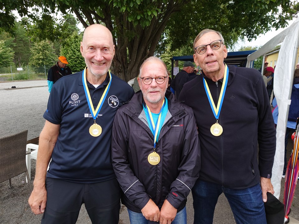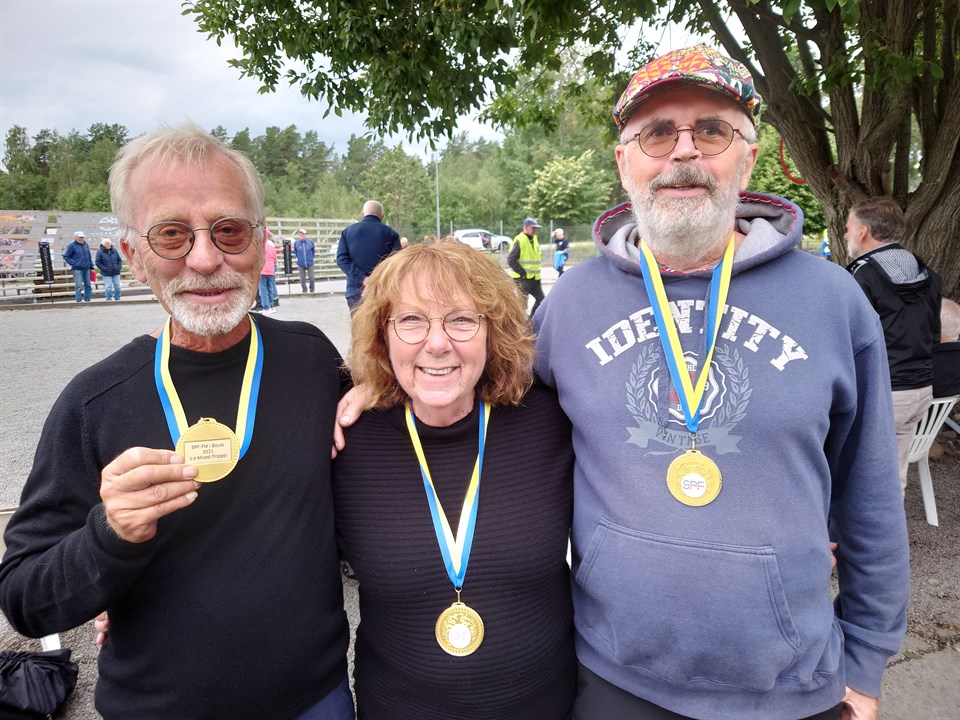 Under veckoslutet 28 & 29 augusti avgjordes 2021 års Förbundsmästerskap inom SPF Seniorerna. Tillsammans med Westerviks Boule Sällskap svarade SPF Senioren Västervik för ett i alla delar välkomponerat arrangemang, som så väl kunde tillgodose deltagande spelare ett café med sittplatser utomhus under tak och en lite varmare inomhushall, med bra torkmöjligheter......... Något vi inte kunde påverka, det var vädret, som var rent bedrövligt under hela lördagens spel. Bouleare är dock ett härdat släkte! Inga sura miner, glada tillrop, frejdiga kommentarer, många "göteborgare" som gjorde dagen mer uthärdlig. 114 lag från 45 olika SPF-föreningar, från Trönö/Hälsningland i norr till Smygehamn i syd, Slite på Gotland i öster och Uddevalla/Orust i väst, hade anmält sitt deltagande i årets Förbundsmästerskap. Som under tidigare års Förbundsmästerskap spelades det tripplar i klasserna Dam-, Herr- och Mixed-trippel. Tyvärr inte mer än 15 lag i Dam-trippel, något fler i Herr-trippel, 27 lag och i Mixed-trippel var anmält 72 lag. Resultaten från de olika klasserna kommer att via mail skickas ut till den kontaktperson som angetts på SPF-föreningens anmälan! Bilder på de främsta pristagarna kommer också att förmedlas. Bilder på samtliga pristagare ligger på vår hemsida, likväl som bilder från både lördagens och söndagens spel. Listen över bilden på förstasidan, där står det bilder - klicka och välj vad du vill titta på! Som arrangerande klubb är det mycket hedrande att SPF Senioren Västervik har medlemmar i Westerviks Boule Sällskap, som var så framgångsrika i årets Förbundsmästerskap 2021!! 1a i klassen Mixed-trippel och spelade gjorde, Britt-Marie Karlsson, Ulf Jönsson och Bo Eriksson! 1a i klassen Herr-trippel och spelade gjorde, Ove Öhrling, Leif Schenell och Arne Jonasson! 1a i klassen Dam-trippel och spelade gjorde, Inger Wedholm, Inger Sundqvist och Ann-Lis Svensson kommer från Forsby. Från placering 1>>4 i respektive klass premierades med medaljer och ett konstverk av Jan Wiberg, en lokalt förankrad konstnär med bred pensel, känd i hela Sverige! Westerviks Boule Sällskap och SPF Senioren Västervik tackar samtliga spelare och lag för ett riktigt väl genomfört SPF Förbundsmästerskap 2021 och lämnar staffettpinnen vidare............ Styrelsen för Westerviks Boule Sällskap tackar de medlemmar som med ett oegenyttigt arbete bidragit till att vi tillsammans med SPF Senioren Västervik kunnat nå målet, att genomföra ett minnesvärt Förbundsmästerskap 2021!