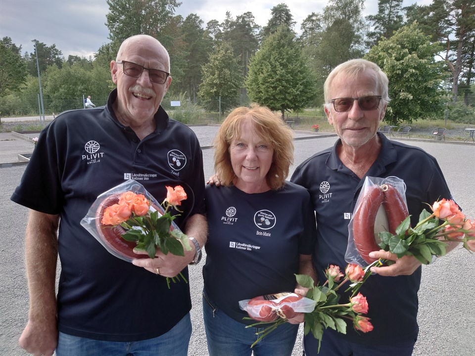 Westerviks Boule Sällskap håller en hög takt i sina tävlingsupplägg! Efter att ha arrangerat två riktigt stora och resurskrävande tävlingar, ÖSBFs seriesammandrag och SPFs förbundsmästerskap, så var det under onsdagen dags för en tävling i det lite mindre formatet, JOJJEN (på)-LÄGGET!! Upplägget för tävlingen blev att det spelades tripplar och gruppspel, med 6 lag i varje grupp och de bästa 1orna och 2orna gick vidare till semi- och finalspel. I grupp 1 fanns laget som genom 5 vinster/10 poäng och +19 i klotdiff var det i särklass bästa laget i båda grupperna! Stefan Edström, Jan Edström och Matti Leete hade en bra dag och gick som bästa lag i grupp 1 vidare. Från samma grupp gick laget med Britt-Marie Karlsson, Bo Eriksson och Lars Zeed vidare. Dock med ett nödrop, då laget bara spelade hem 3 vinster/6 poäng och +15 i klotdiff. Överumslaget med Ingegerd Rosander, Ulf Rosander och Sven Karlsson var aspiranter på andraplatsen och vidare spel i tävlingen. Inför sista omgången var klotdiffen till laget Britt-Marie Karlsson, Bo Eriksson och Lars Zeed ett enda klot, allt annat lika. Överumslaget vann vs Bengt-Åke Nilsson-Gun-Britt Andersson och Ulf Erlandsson med 12-1 fick en klotdiff på +12. För att gå vidare var Britt-Marie Karlsson, Bo Eriksson och Lars Zeed tvingade få en vinst med minst 12 i klotdiff. Det som gjorde dagen var den sista matchen i gruppspelet, som man vann med 13-0 vs Lisbeth Nilsson-Nils Ragnarsson och Ebbe Andersson. Grupp 1 och WBS-lagen med Stefan Edström, Jan Edström och Matti Leete, samt Britt-Marie Karlsson, Bo Eriksson och Lars Zeed vidare till semifinal. Från grupp 2 gick WBS-laget med Arne Jonasson, Arne Andersson och Bernt Kedfors vidare, 3 vinster/6poäng och +15 klotdiff. CAL7LEJ-laget Marie Ejdedal, Peter Ejdedal och Per Ahlund var också vidare efter 3 vinster/6 poäng och +10 i klotdiff, Semifinal 1 och här möttes; WBS-laget Stefan Edström, Jan Edström och Matti Leete vs Marie Ejdedal, Peter Ejdedal och Per Ahlund från CAL/LEJ. Vinst för laget från CAL/LEJ med klara 13-4. Semifinal 2 mellan de båda WBS-lagen Arne Jonasson, Arne Andersson och Bernt Kedfors vs Britt-Marie Karlsson, Bo Eriksson och Lars Zeed slutade med vinst för Britt-Marie Karlsson, Bo Eriksson och Lars Zeed med 13-9. Således kom dagens final att spelas mellan WBS-laget Britt-Marie Karlsson, Bo Eriksson och Lars Zeed vs Marie Ejdedal, Peter Ejdedal och Per Ahlund från CAL/LEJ. En i alla delar välspelad match som vanns av WBS-laget med 13-7. I matchen om tredje pris spelades den mellan de båda WBS-lagen Arne Jonasson, Arne Andersson och Bernt Kedfors vs Stefan Edström, Jan Edström och Matti Leete. Vinst för Arne Jonasson, Arne Andersson och Bernt Kedfors med 13-9. Smakfulla priser från tävlingens sponsor delade ut till de bästa lagen , tillsammans med WBS-färgade rosor. Tävlingskommittén tackar gästande och mer närliggande lag för bra genomförda matcher!