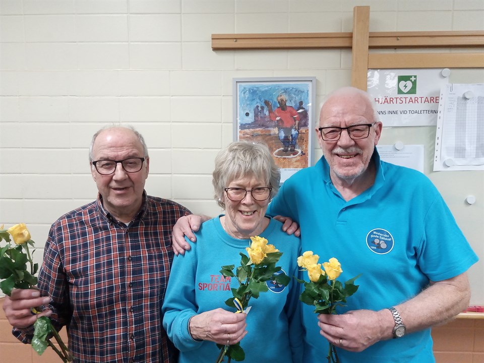 Det känns väldigt inspirerande att kunna avge resultat från vår andra tävling 2020 - FLORISTHUSETS TRIPPEL! Inspirerande i den meningen att tävlingen samlade många, helt nya spelare på våra banor! Det är också inspirerande att kunna meddela att några av dessa nya placerar sig på framträdande platser som i vinnande lag, Ann-Sofie Andersson och Marie Ekelund som är med i laget på tredje plats! Med lite kringel och krångel var det fulla lag i hallen - 48 spelare - 16 trippellag! Upplägget för Floristhusets trippel var enligt Monrad - 5 omgångar och inget slutspel. Med lottade lag var det lite extra spännande att se hur på pappret "starka" lag skulle lyckas....... Lite si och lite så.....var det inför den fjärde omgången bara 2 lag med 3 vinster/6 poäng och dessa var; Leif Schenell-Lennart Göthe o Ann-Sofie Andersson & dessutom +23 i klotdiff!! Boo Stalebrant-Marie Ekelund o Arne Jonasson +4 i klotdiff Därefter 4 lag med 2 vinster/4 poäng och med mellan 3>5 i klotdiff. Det lag med som kom bäst rustat ur den fjärde omgången var laget med Sven Karlsson-Barbro Karlsson o Thomas Nyberg, som efter vinst med 13-2 vs Zeed/Nilsson/Lönn avancerade till spel på banor med lägre bannummer.... Lagen Boo Stalebrant-Marie Ekelund o Arne Jonasson o Leif Schenell-Lennart Göthe o Ann-Sofie Andersson möttes i både den fjärde och femte omgången med uddapoängvinst för det förstnämnda laget, 12-11. I femte omgången klippte Leif Schenell-Lennart Göthe o Ann-Sofie Andersson till med en vinst på 11-5 vilket med hänsyn till matcherna runt omkring, blev helt avgörande för var vinsten skulle gå! Vinst för Boo Stalebrant-Marie Ekelund o Arne Jonasson och då hade laget varit helt outstanding med 5 vinster! Prispallen för FLORISTHUSETS TRIPPEL! 1/ Leif Schenell-Lennart Göthe o Ann-Sofie Andersson 4 vinster/8 poäng och 28 klotdiff 2/ Sven Karlsson-Barbro Karlsson o Thomas Nyberg 4 vinster/8 poäng och 19 klotdiff 3/ Boo Stalebrant-Marie Ekelund o Arne Jonasson 4 vinster/8 poäng och -1 klotdiff Tävlingskommittén uppvaktade de bästa lagen med generösa vinster från FLORISTHUSET! Tävlingskommittén tackar alla spelare för en väl genomförd tävling!