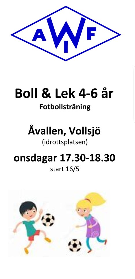 Mycket glädjande nyheter. Boll & Lek kommer att starta upp igen den 16/5. Klockan 17.30 börjar första passet för våra yngsta lirare. Se bild för mer info. Välkomna till Åvallen och wollsjö AIF! P/F 6-7 20 apr 2018 3kommentarer