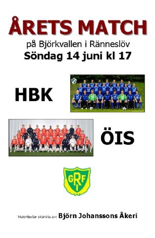 Söndagen den 14 juni klockan 17 spelar HBK träningsmatch mot Örgryte på Björkvallen i Ränneslöv. Ta nu chansen att komma och titta på allsvensk fotboll på nära håll. Det är ju även ett gyllene läge att jaga lite autografer. Enligt uppgift ska Marcus Allbäck göra comeback efter skada och nya tränaren Åge Hareide kommer väl också vara på plats. Kom nu och heja på HBK!! WRY Föreningssida 11 jun 2009 0kommentarer